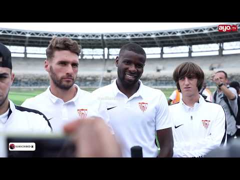 Wachezaji wa Sevilla FC leo wakijibu maswali ya Waandishi wa habari